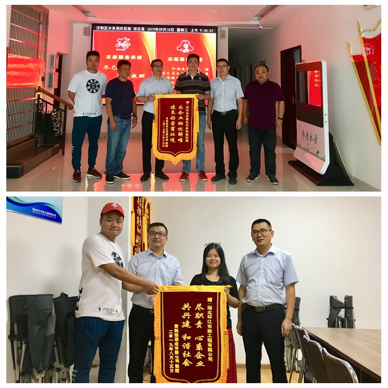 随后,黄晓文一行前往湖北环江市政工程有限公司赠与锦旗,以表对黄鹤楼酒业武汉厂区雨污分流工程建设的感谢之情。